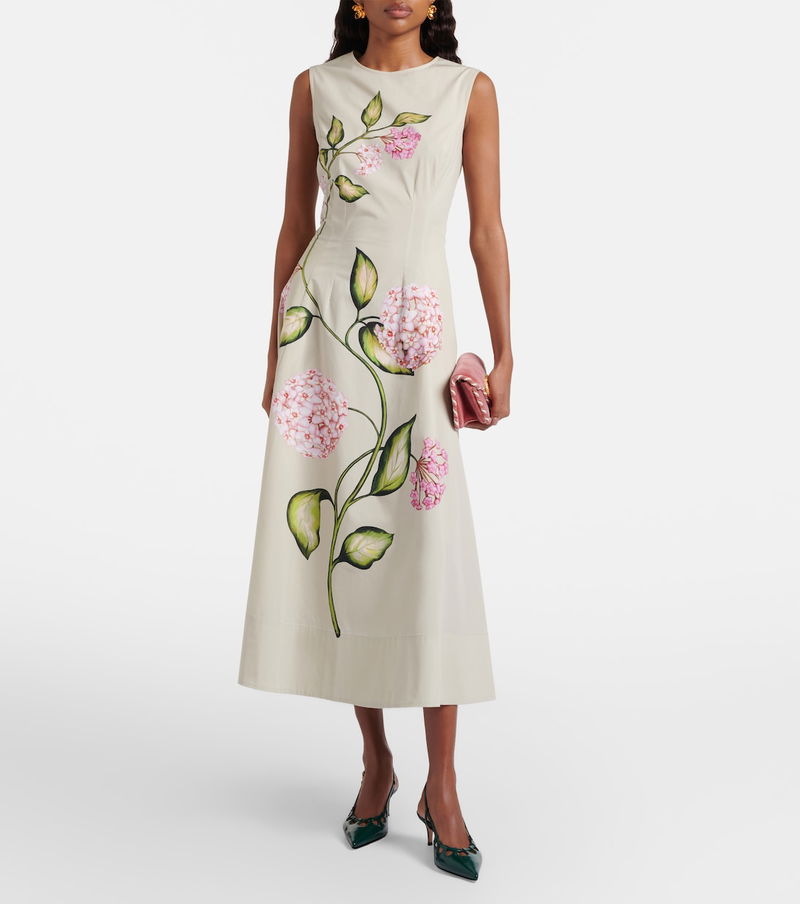 Oscar de la Renta's designs bring the beauty of nature to ready-to-wear. The porcelain midi dress is crafted from cotton-blend poplin and adorned with blooming flowers, lending the silhouette a polished and romantic look.