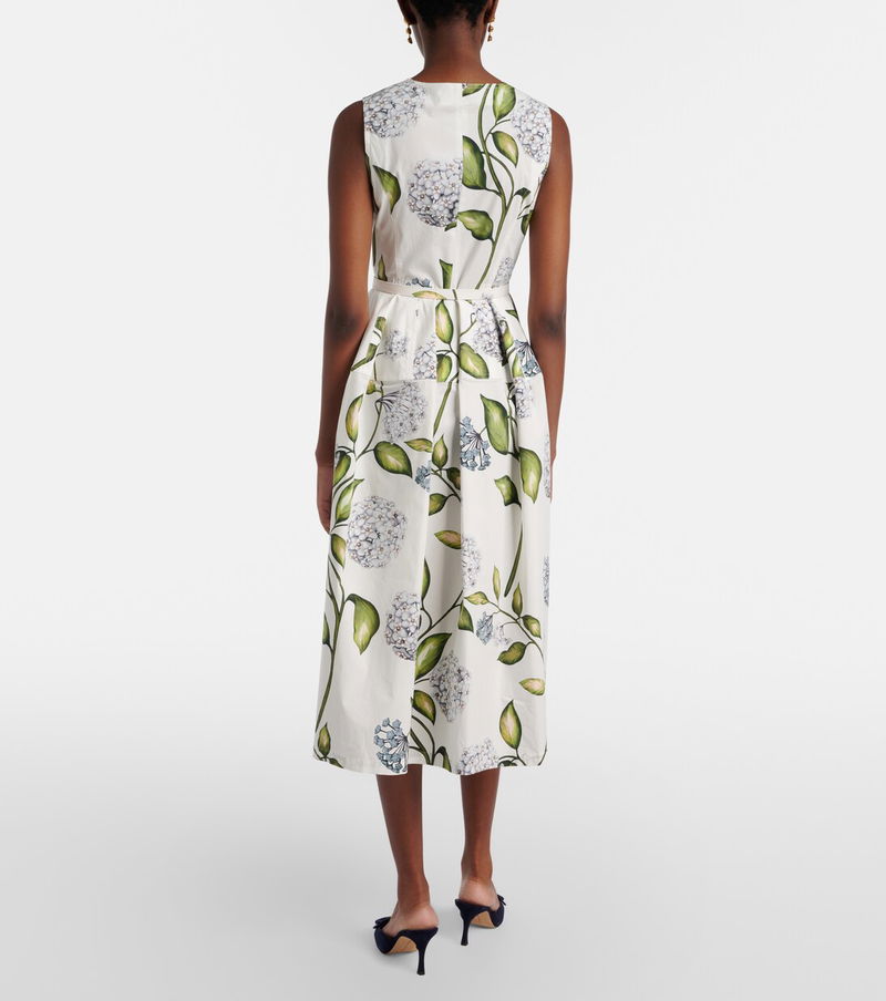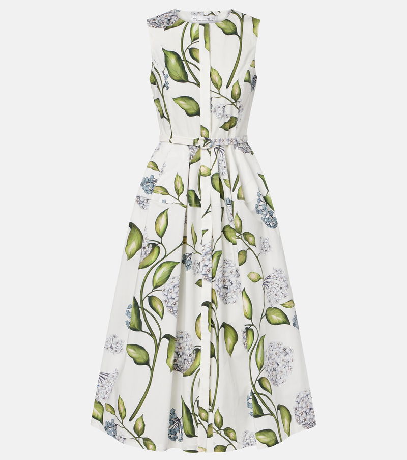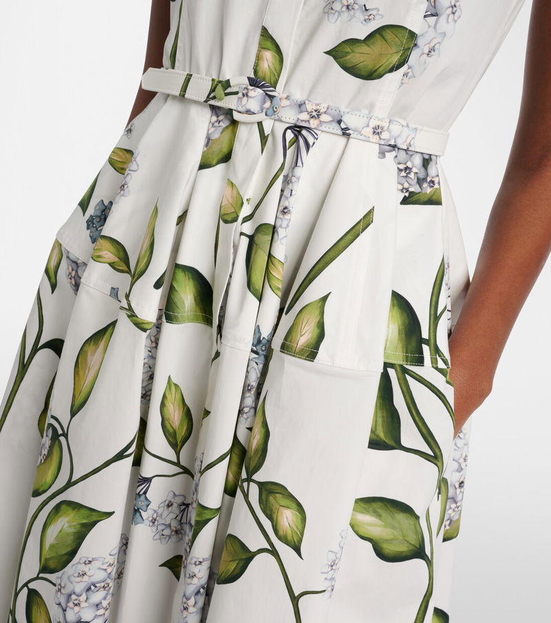 Oscar de la Renta's designs bring the beauty of nature to ready-to-wear. This elegant midi dress is crafted from cotton-blend poplin, complemented by the vibrant Porcelain Flower print and a matching belt.