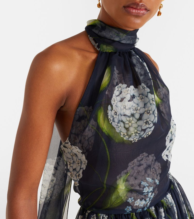 Porcelain Flower Silk Chiffon Gown