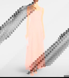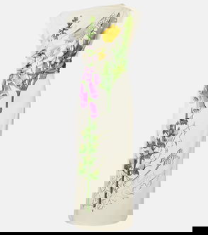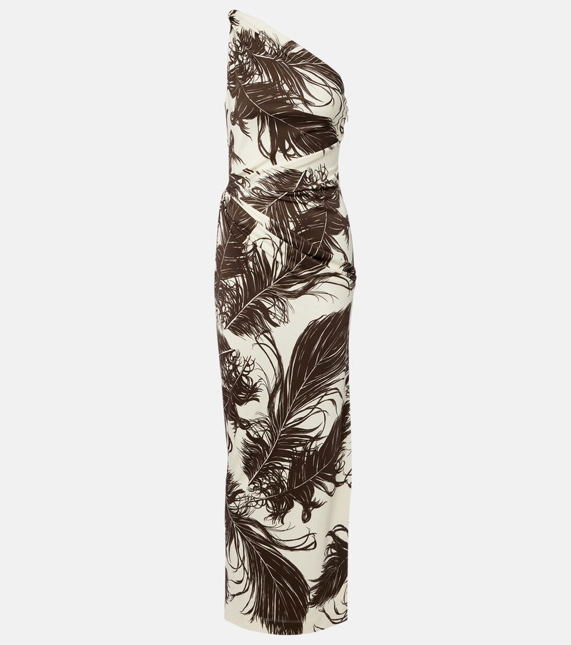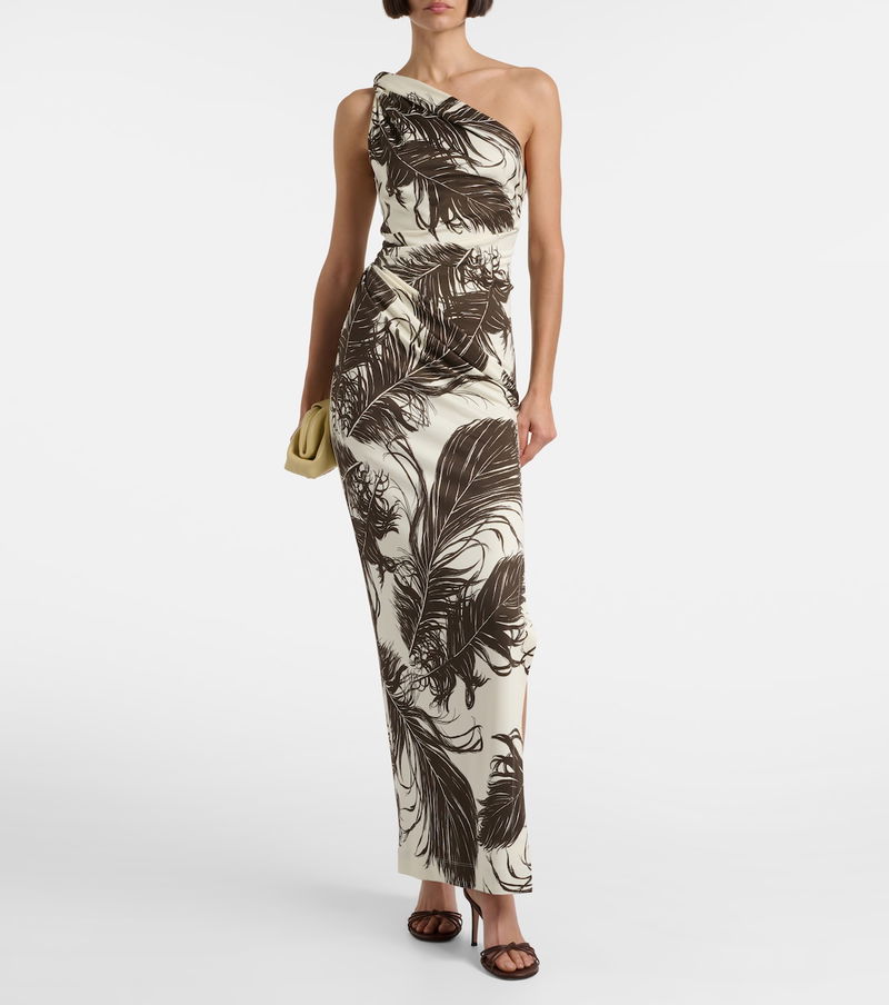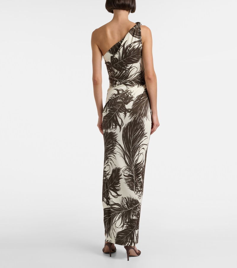 Oscar de la Renta's designs bring the beauty of nature to ready-to-wear. This soft Milano jersey maxi dress features a draped one-shoulder neckline and striking all-over feather print.