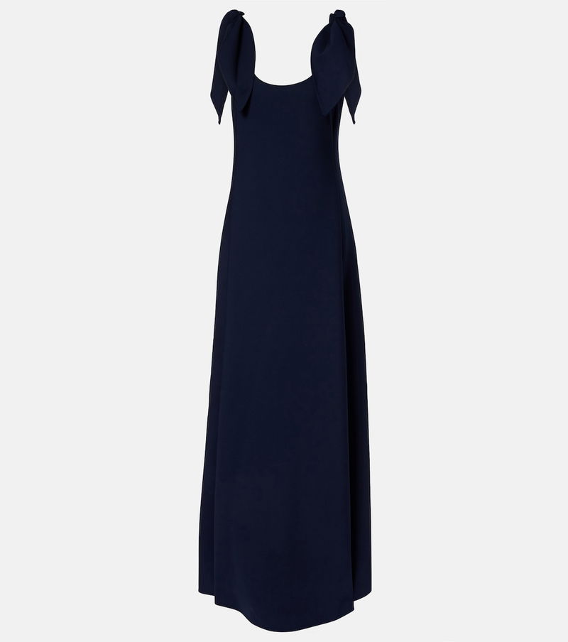 Floral-appliqué Wool-blend Crêpe Maxi Dress