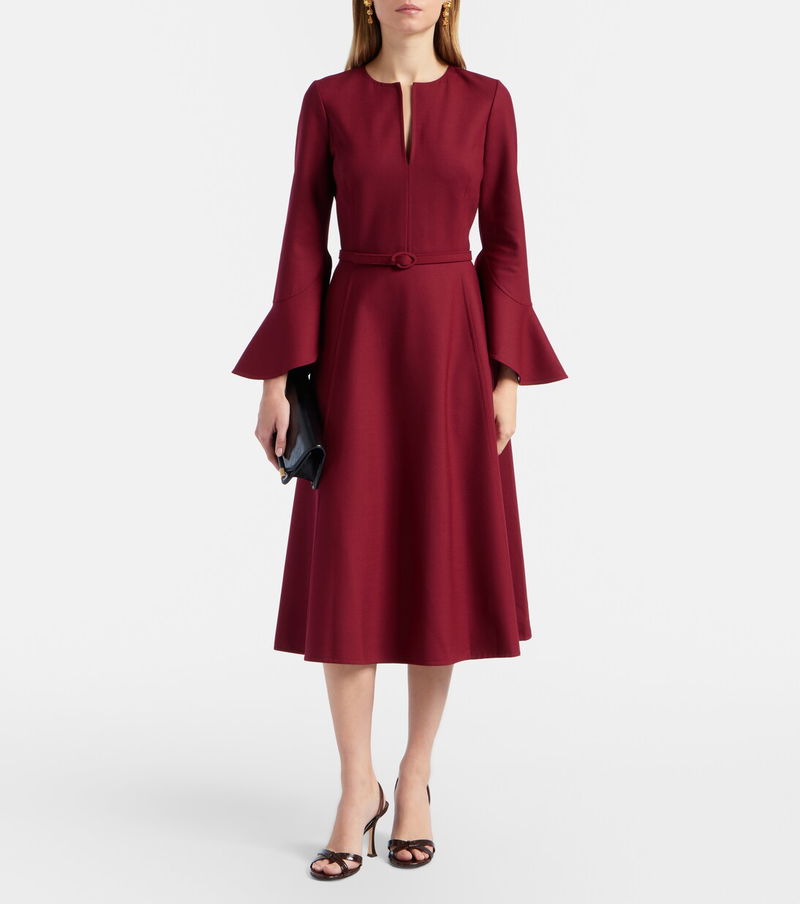 Guipure Lace-Trimmed Wool-Blend Midi Dress