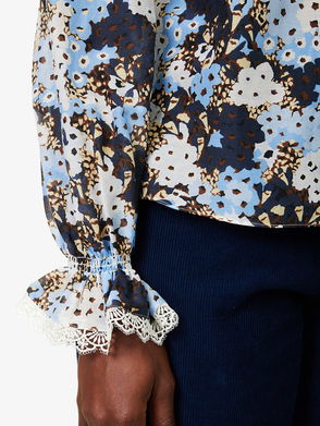 The Coralee Top is crafted from a luxuriously soft silk/linen blend with a floral print with a tropical botanical feel.