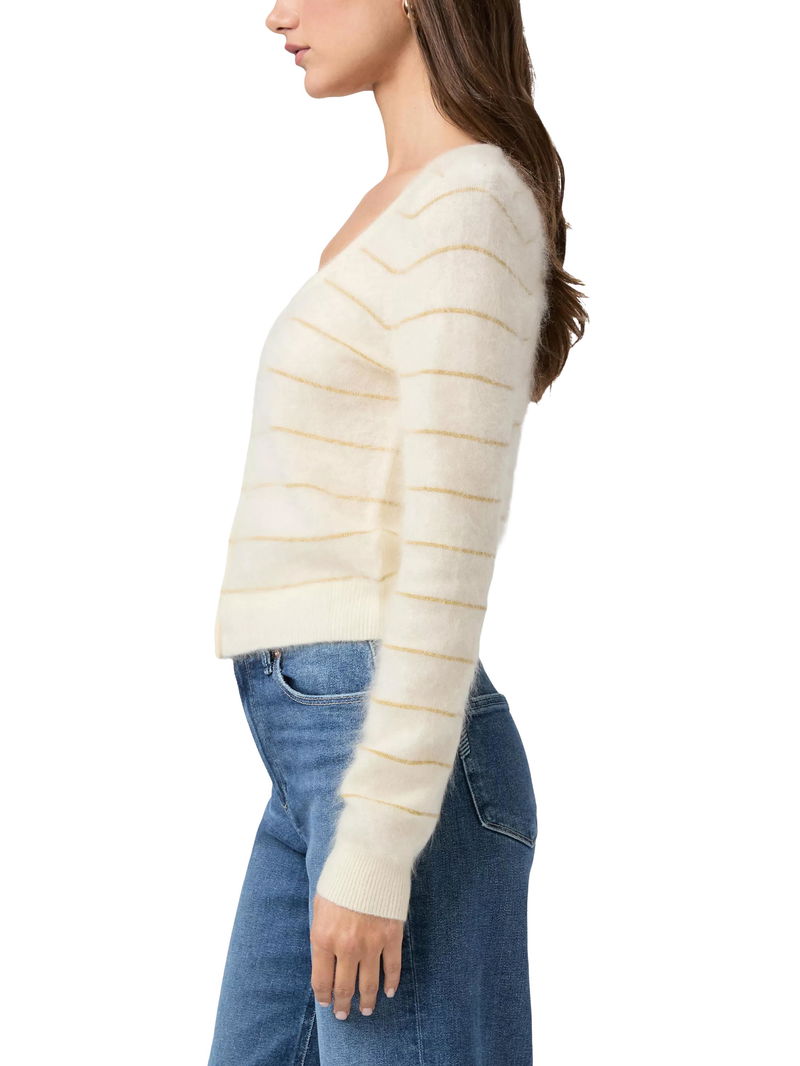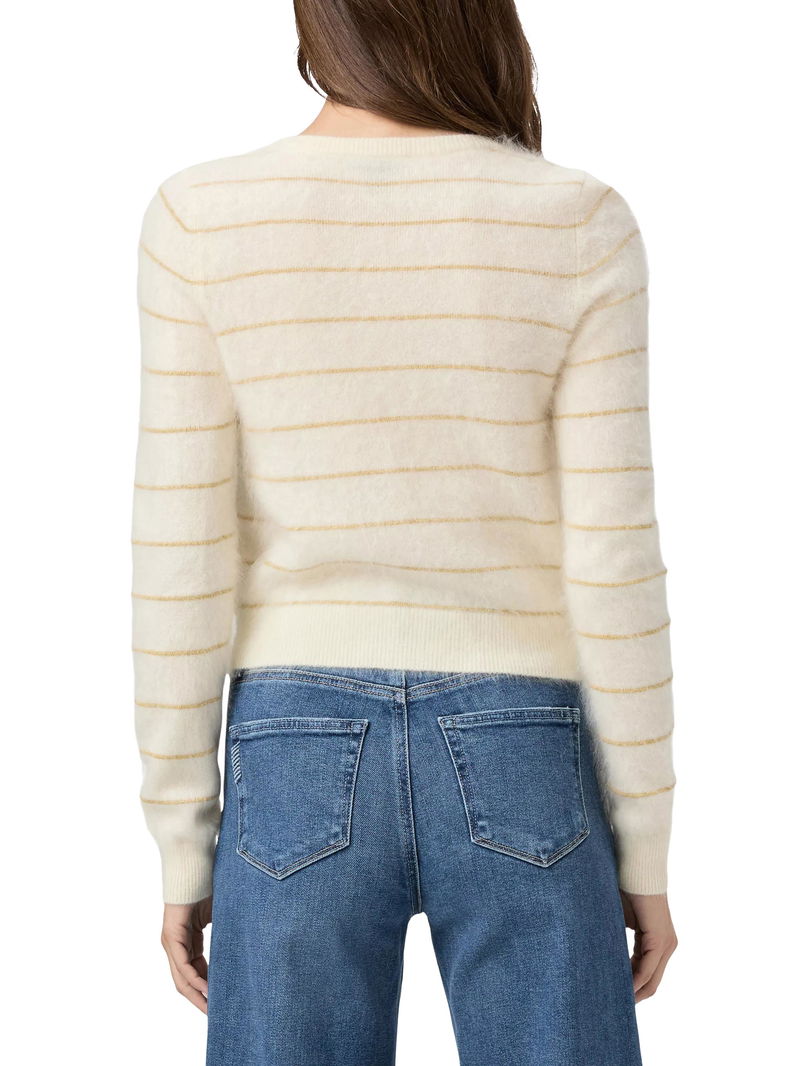A luxurious layer with a touch of shimmer, the Fortuna Cardigan is crafted from 100% fuzzy cashmere. Subtle shimmer stripes add a hint of sparkle, while elegant pearl buttons complete the look with a timeless, feminine finish. This cardigan is as cosy as it is elevated, making it perfect for dressing up denim or layering over your favourite dress.