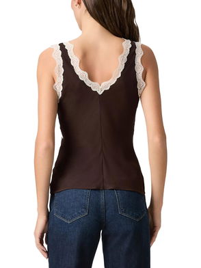 Crafted from Paige’s super soft peach-skin yarn with metallic threads woven throughout, the Stephanie top makes a subtle statement that’s perfect for evening attire.
