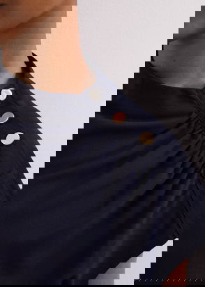 It’s finished with pointelle stitching on the sleeves that extends to the cuffs and high neckline.