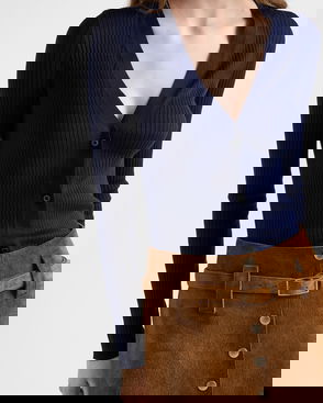 This chic knit cardigan is made from a cotton/nylon blend with stripes, accented by buttons down the centre. The Oberon Cardigan is the perfect transitional piece to pair with anything from jeans to trousers.