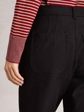 These pants are tailored from luscious velvet for a straight-leg shape and are topped with a glossy silk-trimmed waistband. Style yours with a slinky top and heels for an effortless evening look.
