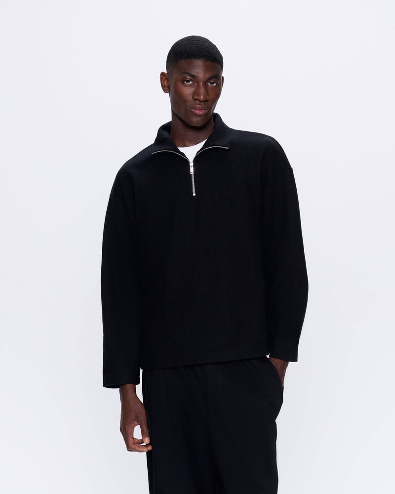 Archive Men's Recycled Wool Jersey Half-Zip Sweater—black