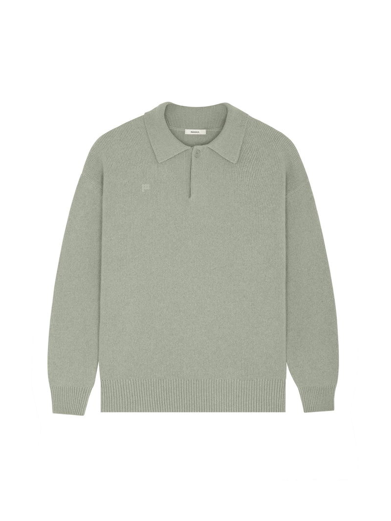 Archive Mens Recycled Cashmere Polo Sweater—moss Green