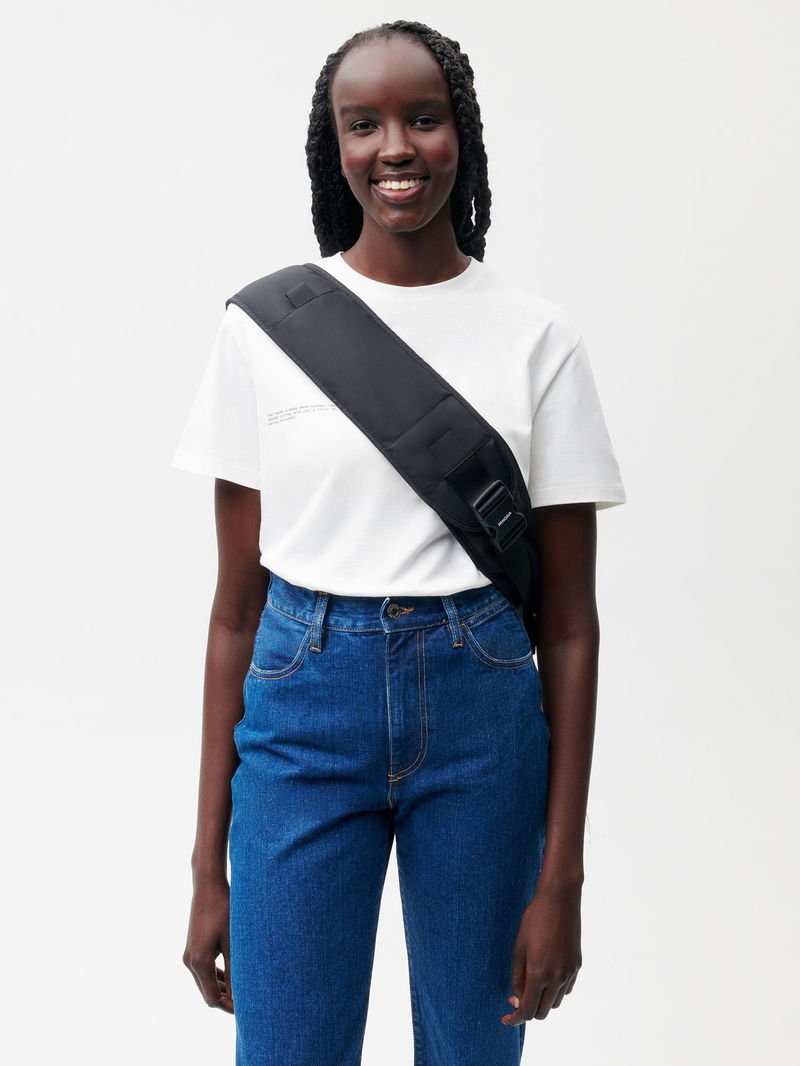 This small cross-body bag is made from a specially formulated nylon that has the ability to biodegrade in around 5 years when disposed of in oxygen-poor (anaerobic) environments such as controlled landfills.