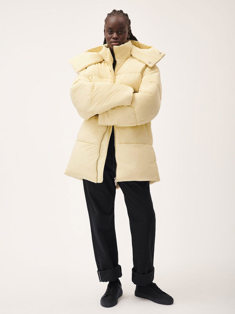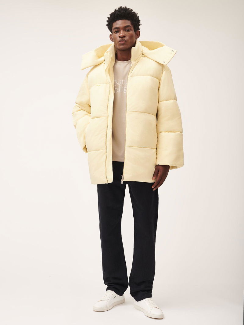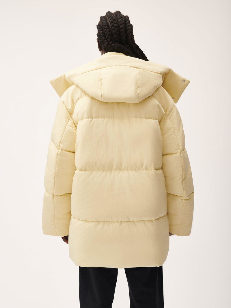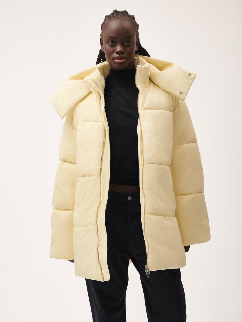 This long puffer jacket is made with FLWRDWN™, a biobased, animal-free alternative to duck and goose down. It is created using wildflowers and a biopolymer derived from corn. It has a lightweight outer shell made from 100% recycled nylon, diverting pre-consumer waste materials from landfill.