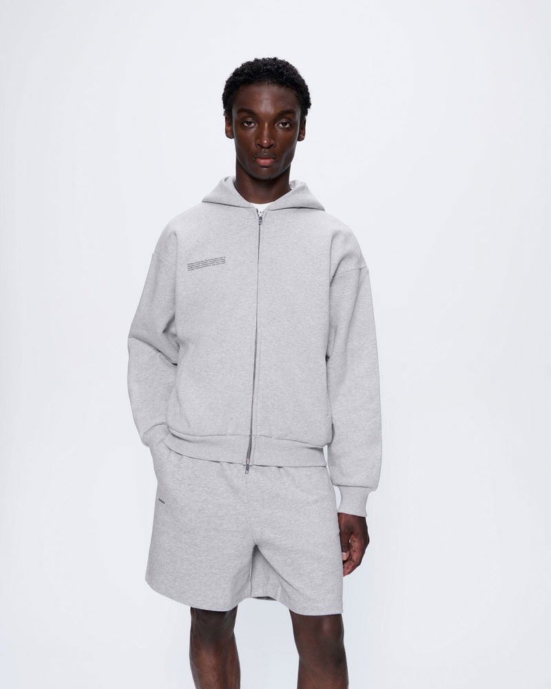 Mens 365 Heavyweight Two-Way Zip-Through Hoodie—Grey Marl
