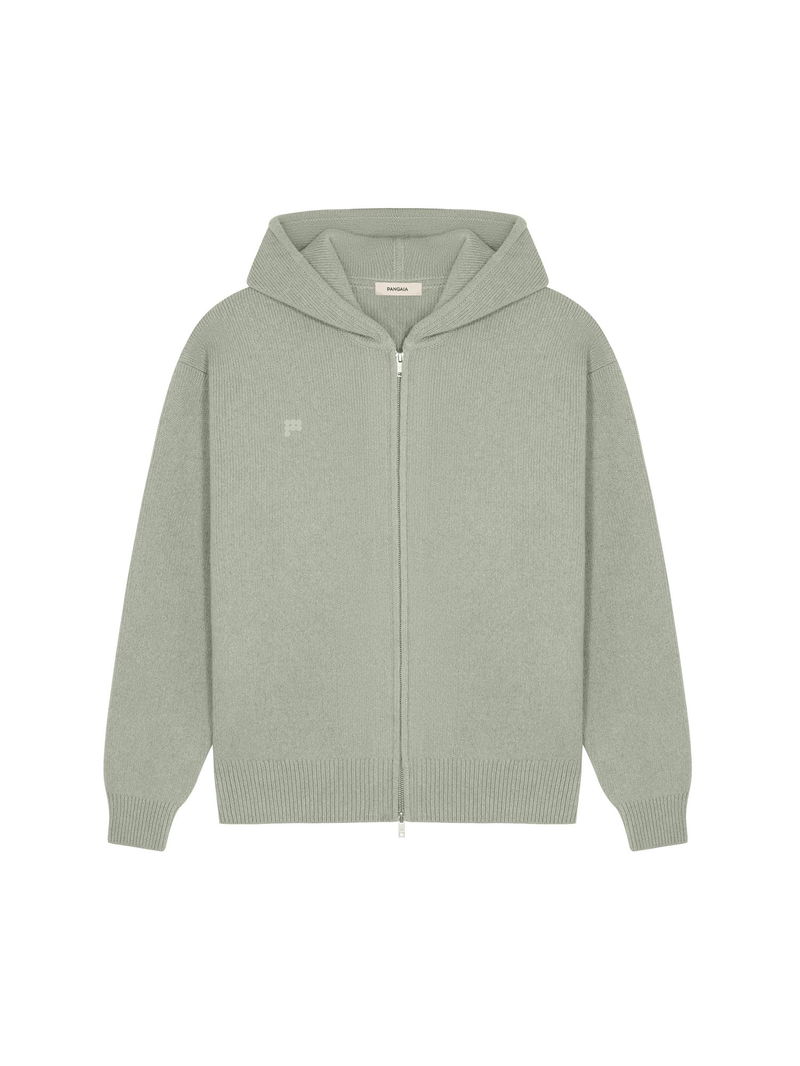 Mens Recycled Cashmere Zipped Hoodie—moss Green