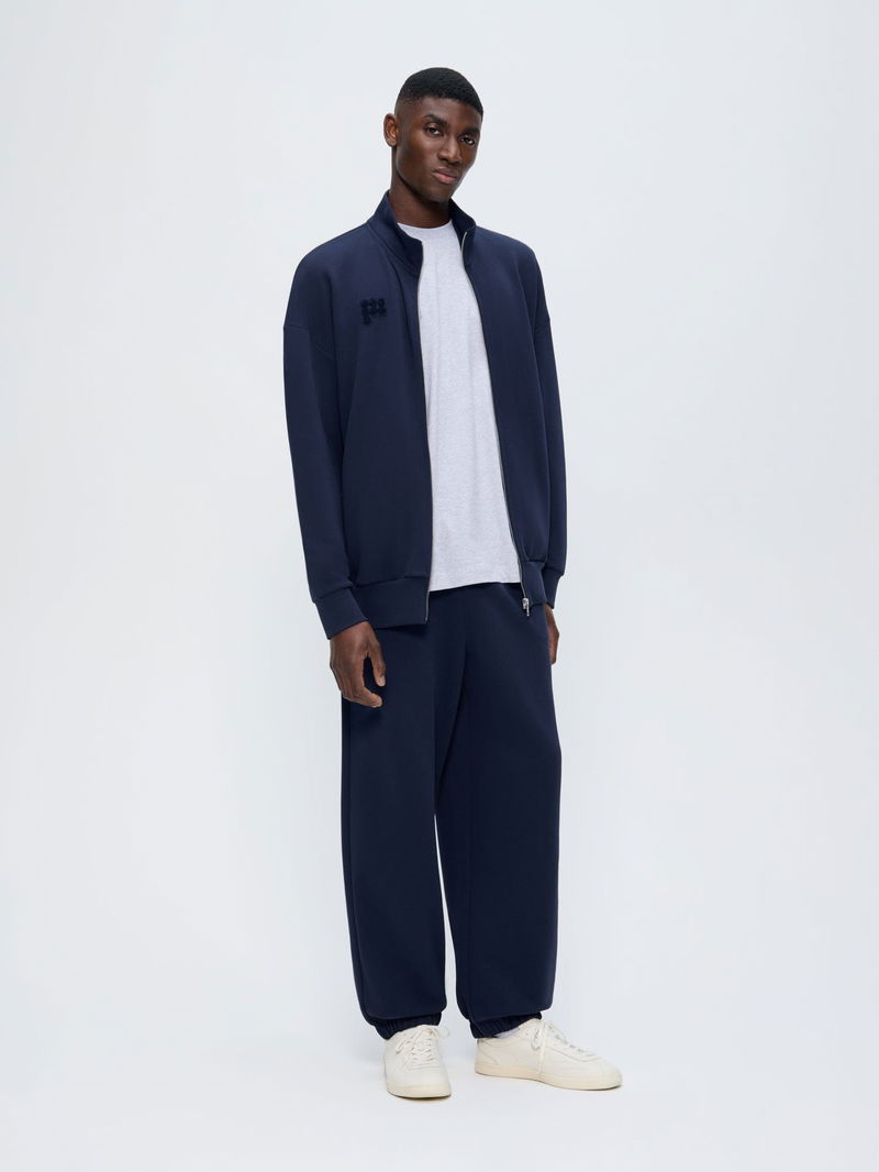 Ground yourself in nature-inspired neutrals. Expertly crafted from 100% OCS-certified organic cotton, these Track Pants in midnight navy offer a relaxed silhouette, an oversized fit and an ultra-soft feel. Designed to balance both warmth and breathability, this versatile essential was treated with PPRMINT™ oil to help keep it fresher for longer.