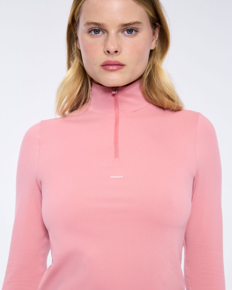 Sale Womens 99% Bio-Based Zipped Long Sleeve Top—Dewy Rose