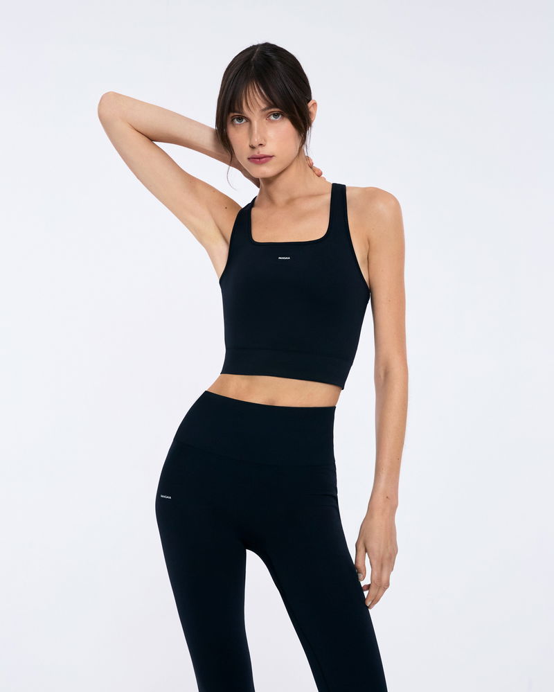 Womens 99% Bio-Based Compressive Ribbed Tank Top—Black