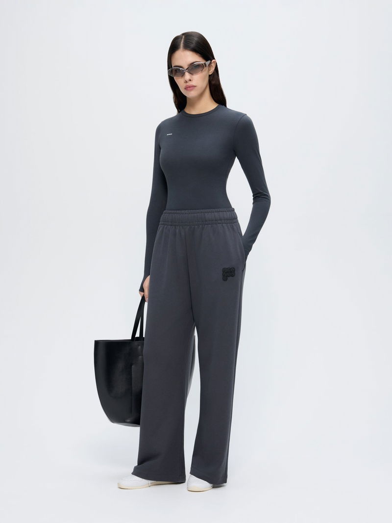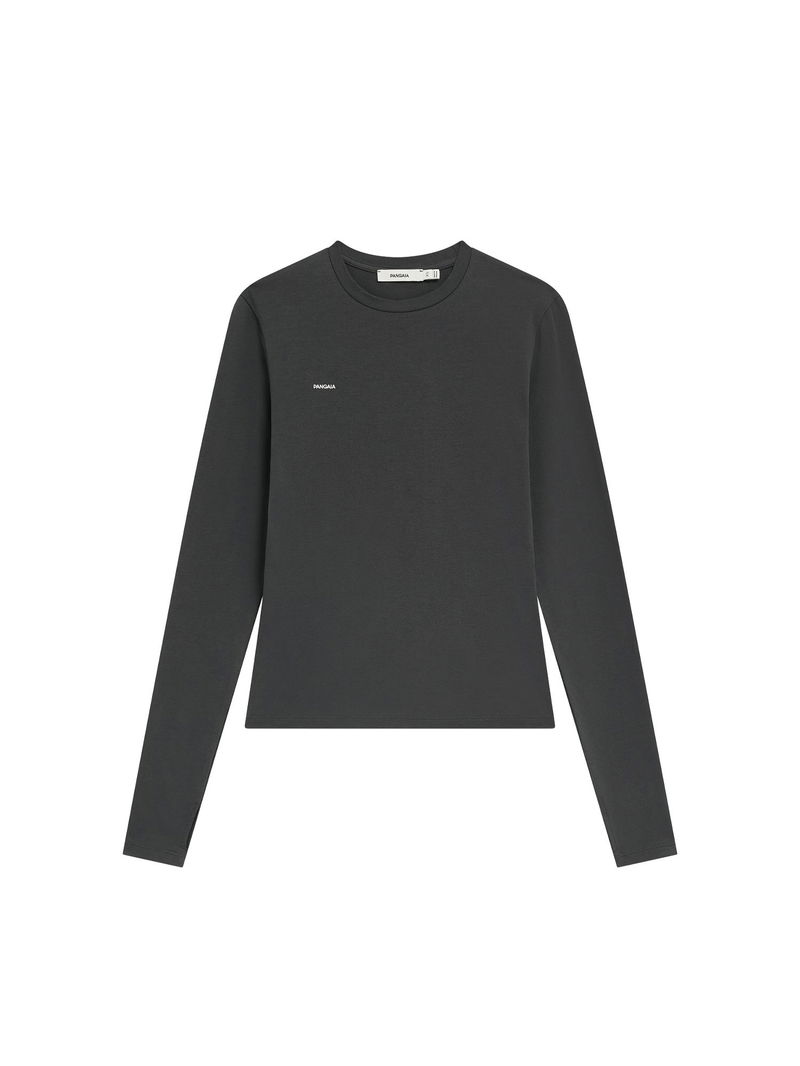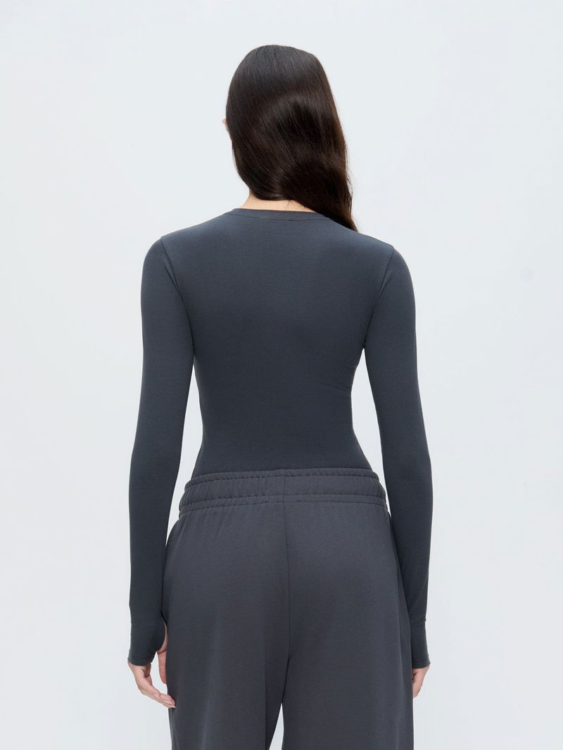 Womens Cotton-Stretch Long-Sleeved Top—Smoked Black