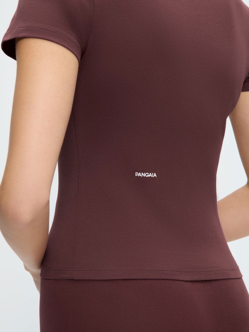 Womens Cotton-Stretch Slim T-Shirt—Chestnut Maroon