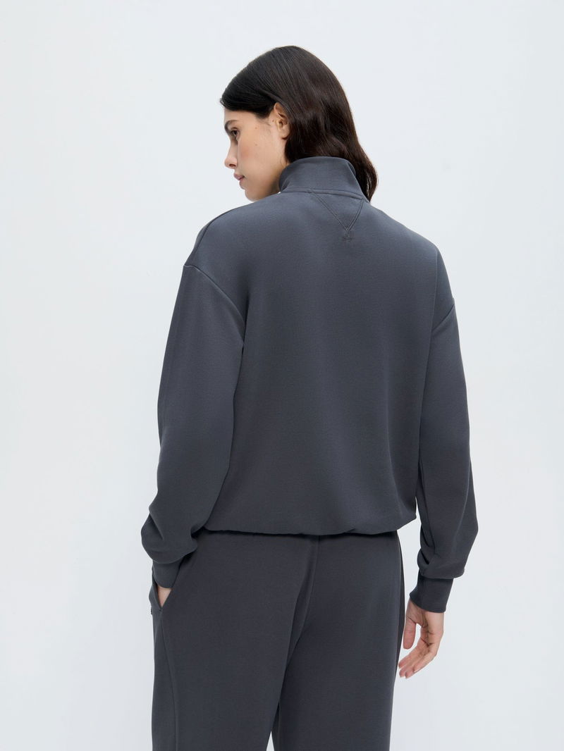 Womens Half Zip Sweatshirt—Smoked Black
