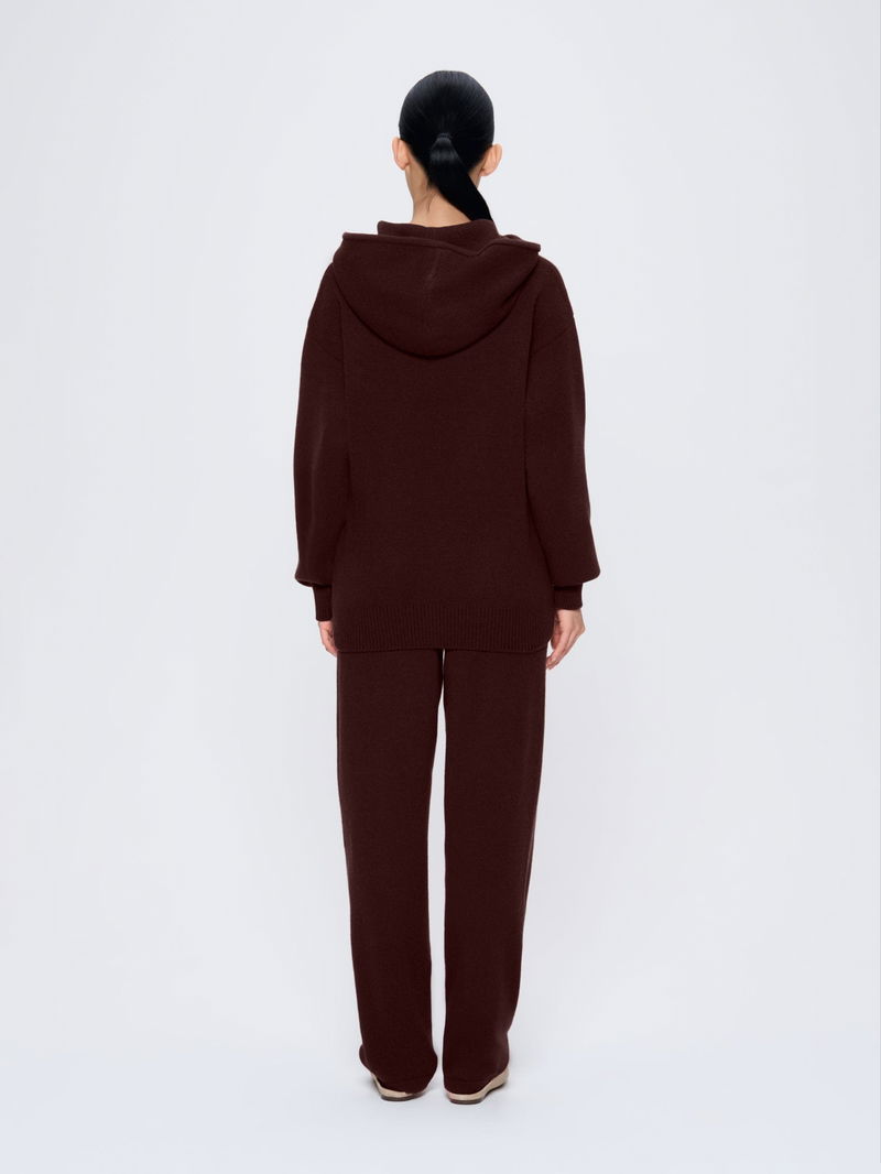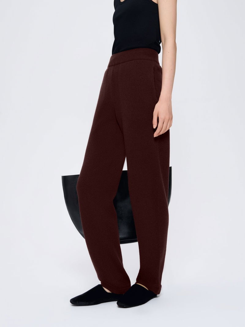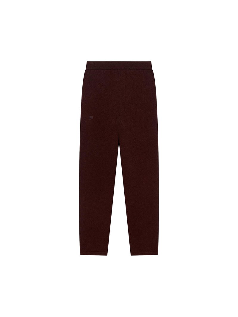 Womens Recycled Cashmere Tapered Track Pants—Dark Burgundy