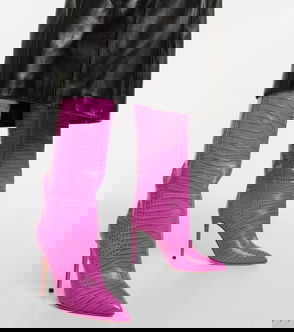 Croc-effect Leather Boots
