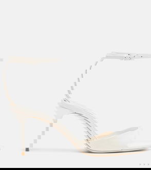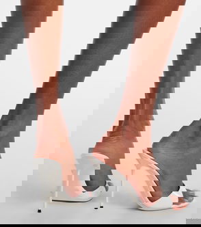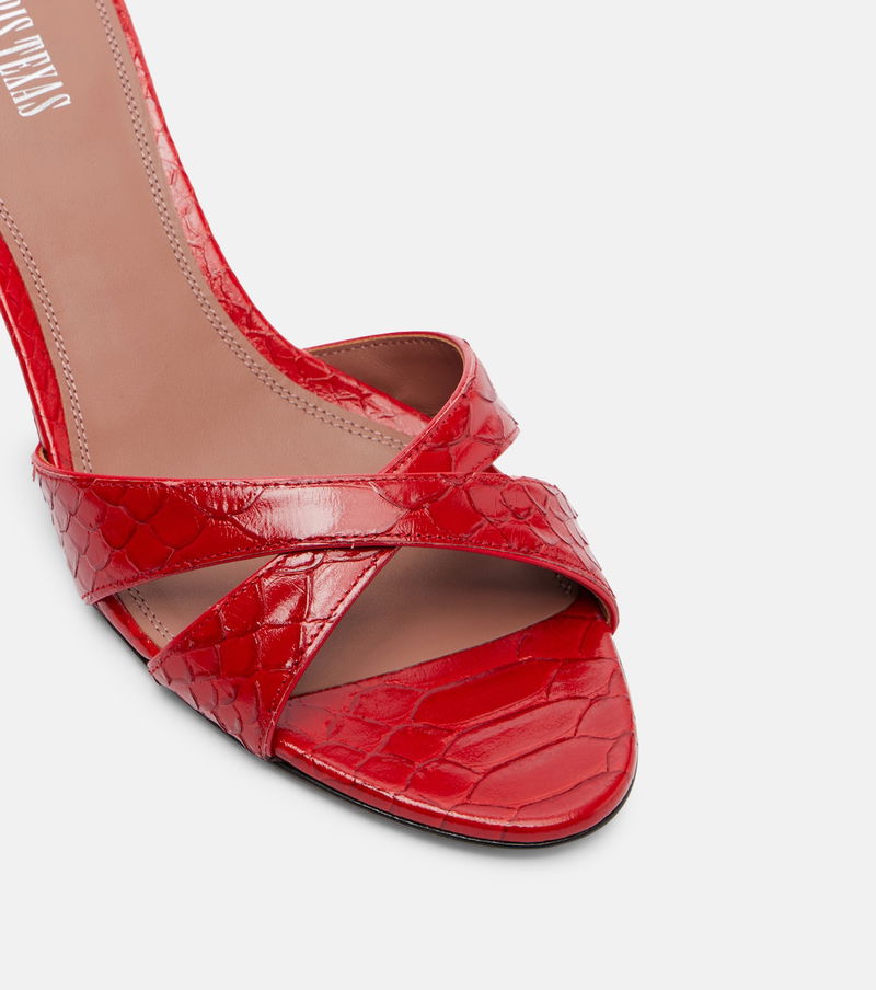 Step in statement-making style with the Nina mules from Paris Texas. The pair is crafted in Italy from croc-effect patent leather and boasts crossed upper straps and sculptural 50mm gradient wedge heels.