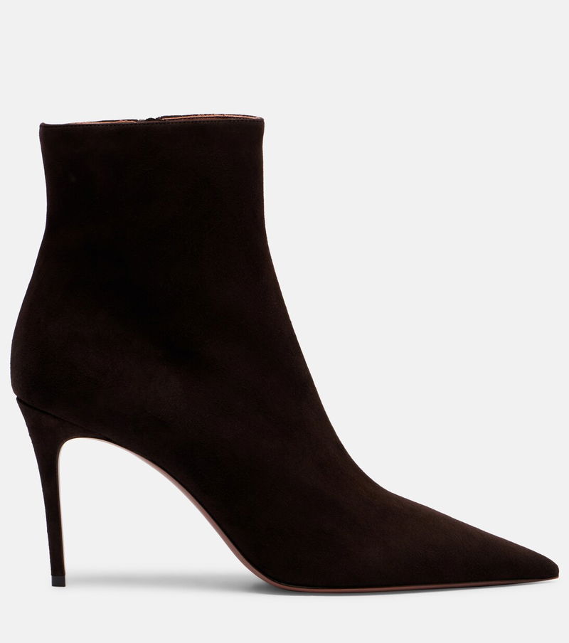 These Vera ankle boots from Paris Texas are crafted from soft suede, showcasing a classic pointed-toe silhouette. The pair stand tall with 85mm stiletto heels and fasten at the sides with zip closure.