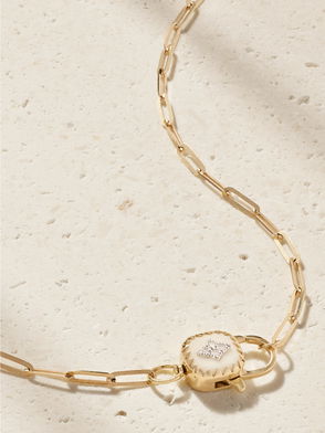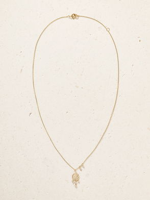 Pascale Monvoisin's necklace is strung with a crystal quartz that's features the word 'L'Amour' - the capital letters and dainty hearts pop against the skin. Handcrafted from 9-karat gold, it has paperclip-style links and lobster clasp fastenings at each end, so you can style the chain any way you'd like.
