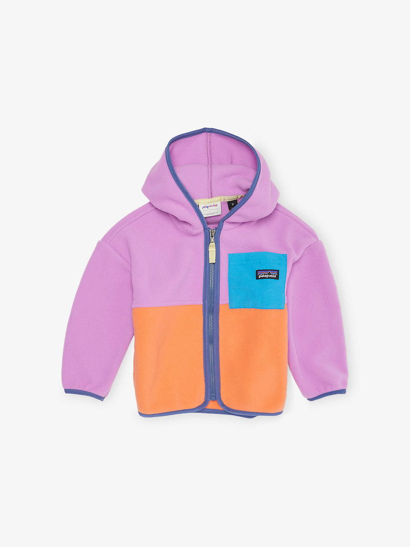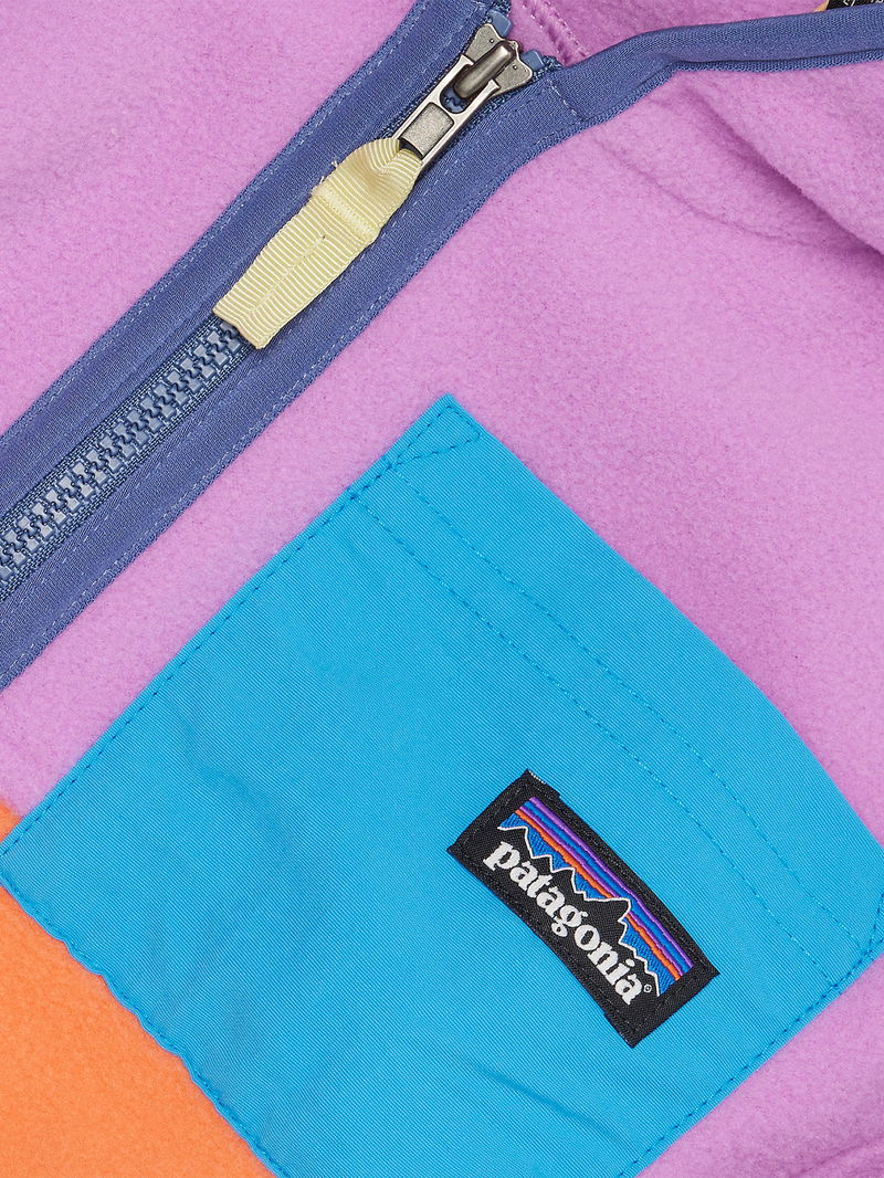 Patagonia fleece hoody. Regular fit, hood, long sleeves, patch pocket at chest, logo patch at pocket, slip pockets at front, colour block design.