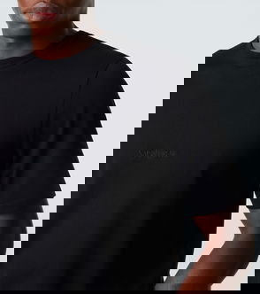 Patagonia recycled-cotton and recycled-polyester blend T-shirt. Pulls on. Regular fit, ribbed crew neck, short sleeves, brand print at front and back.