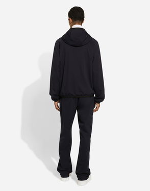 Patagonia shell-down jacket. Hood, long sleeves, all-over padded, two zip pockets at front, brand patch at front.