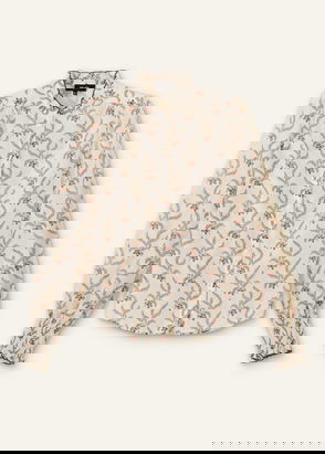 Blouse, Cotton, Buttoned cuffs, Tie-fastening keyhole at back, Non-stretchy fabric, Lightweight fabric.