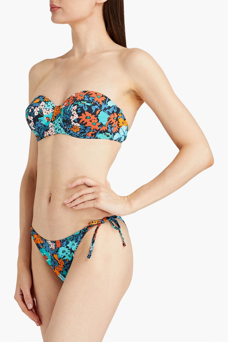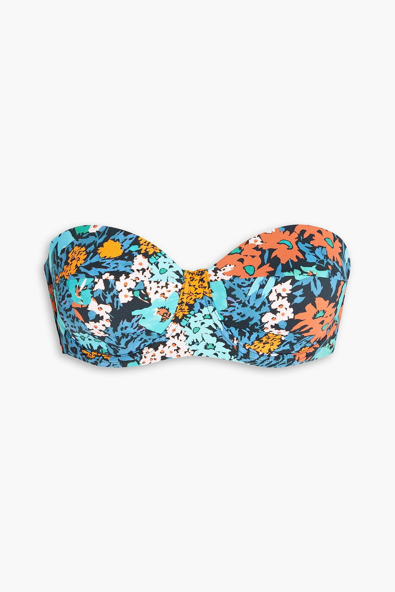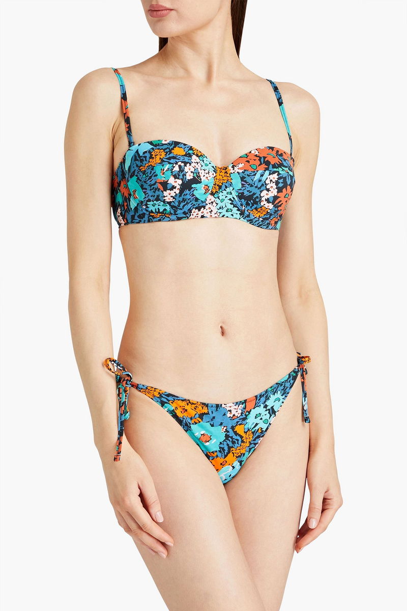 Bikini top, Underwired cups, Floral-print, Stretch-polyamide, Adjustable straps, Clasp fastening at back.