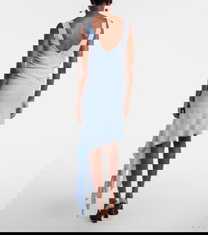 Blending casual ease with sophistication, this minidress is crafted from cotton fleece with a sweater-inspired design. This piece features ribbed trims, a V-neckline, a peplum cinched waist, and the brand’s signature at the front.