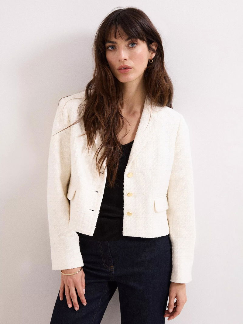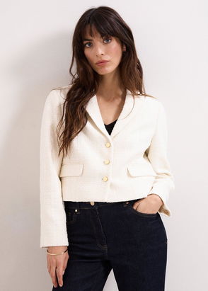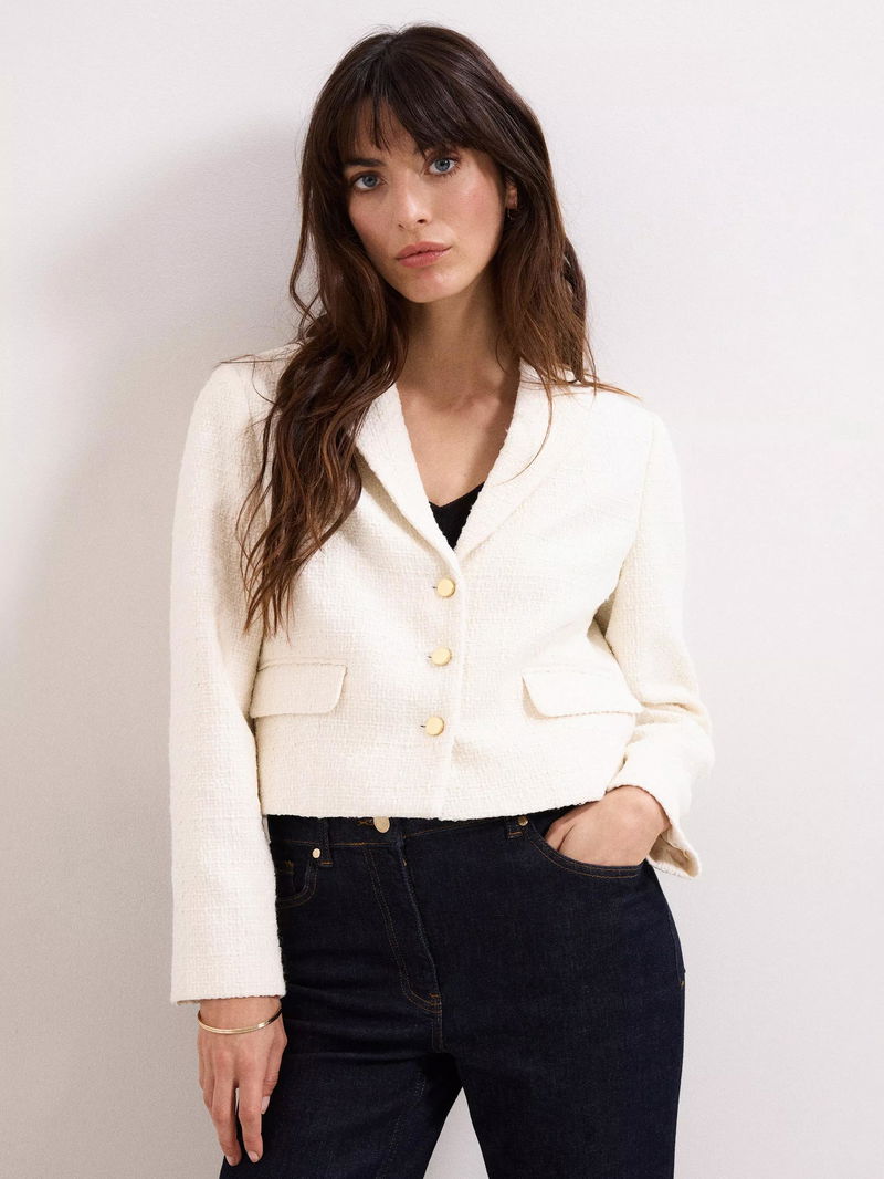 Adria Boucle Cropped Jacket, Ivory