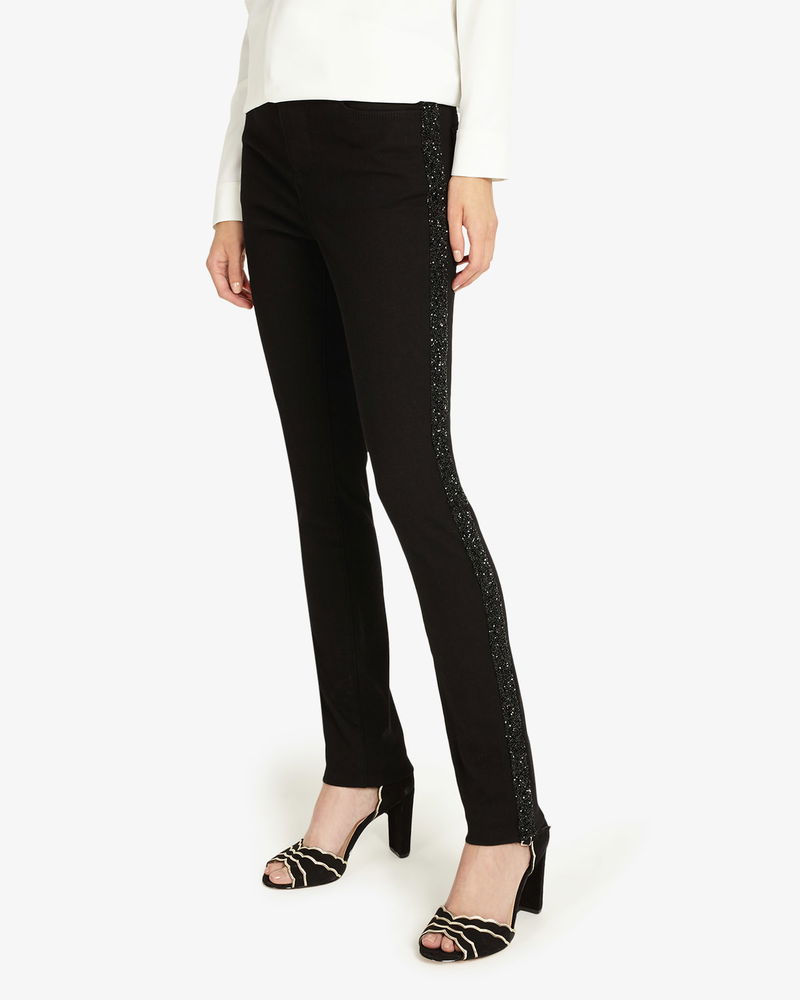 Add a touch of sparkle to your denim collection with this slim-fit style. Featuring a crystal embellished stripe on the outer leg, and finished with five pockets and a zip and fly fastening.