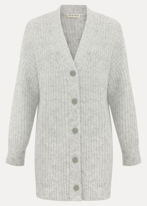 A versatile longline cardigan with a ribbed shawl neckline, broderie inserts and long sleeves. Wear anywhere from days spent relaxing at home or whilst you're out running errands.