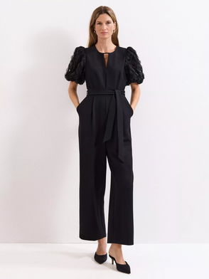 A statement event style that's perfect for your occasion plans next year. This wide leg jumpsuit is designed with an elegant ruched neckline and fluted angel sleeves. Finished with two working pockets and a concealed centre back zip fastening.