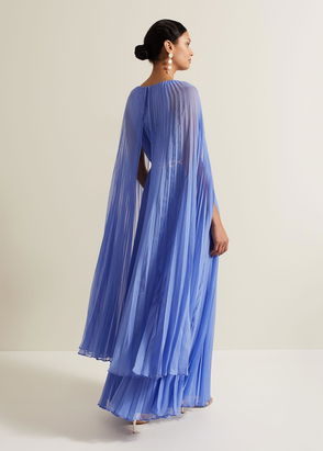 Designed in a bold blue shade with a pleated texture, our Annabel dress features a v neckline, long blouson sleeves and falls to a floaty mini length.