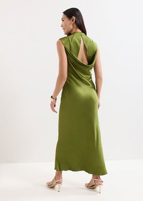 Make a statement in gorgeous lime green. With transformative ruffles on the bodice and a flattering faux wrap detailing, this midi dress is confident and radiant. Flowing down into a fluid, romantic skirt, we love styling this dress with subtle accessories.