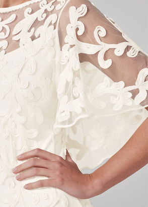 Our Arabella wedding dress is a true showstopper. Crafted with luxurious ivory silk, our dress features a feminine V-neckline and delicate straps. Finished with embroidered floral detailing for a vintage inspired effect it is an understated yet glamorous bridal choice. Style with our Arabella cover up, the perfect final touch for spring or summer weddings.