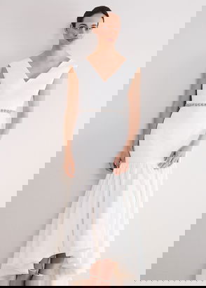 The Arabella wedding dress is a true showstopper. Crafted with luxurious silk, this dress features a feminine V-neckline and delicate straps. Finished with embroidered floral detailing for a vintage inspired effect it is an understated yet glamorous bridal choice.
