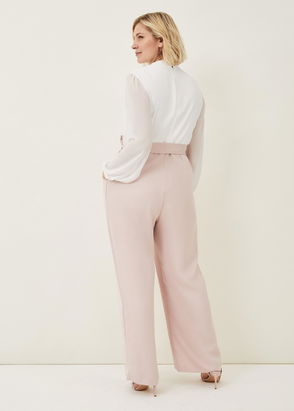 Kept simple with a round neckline and a floaty cape back, this sleeveless wide leg jumpsuit from Phase Eight is made from a crinkle effect viscose blend fabric. With a contrast wave trim, this one-piece is a brilliant alternative to dresses for that special occasion.