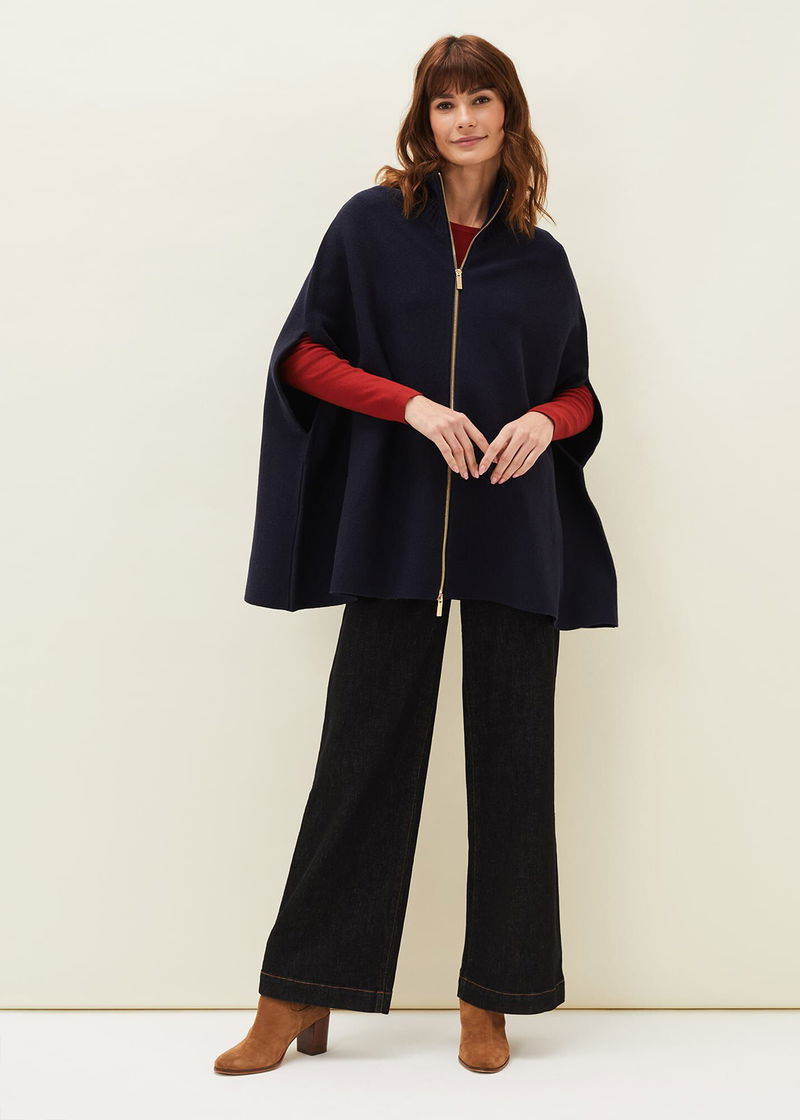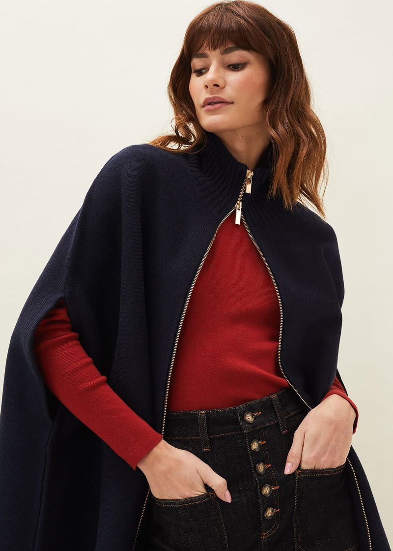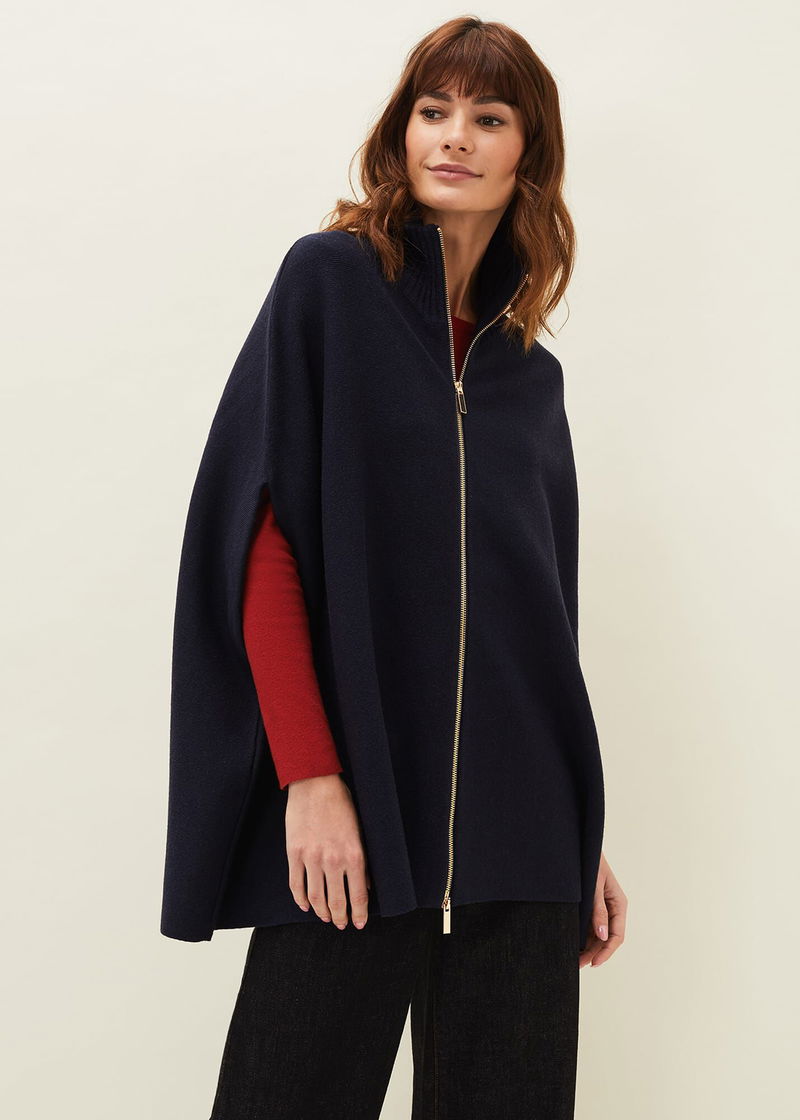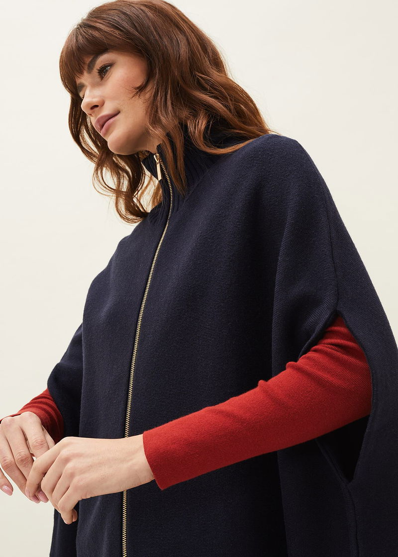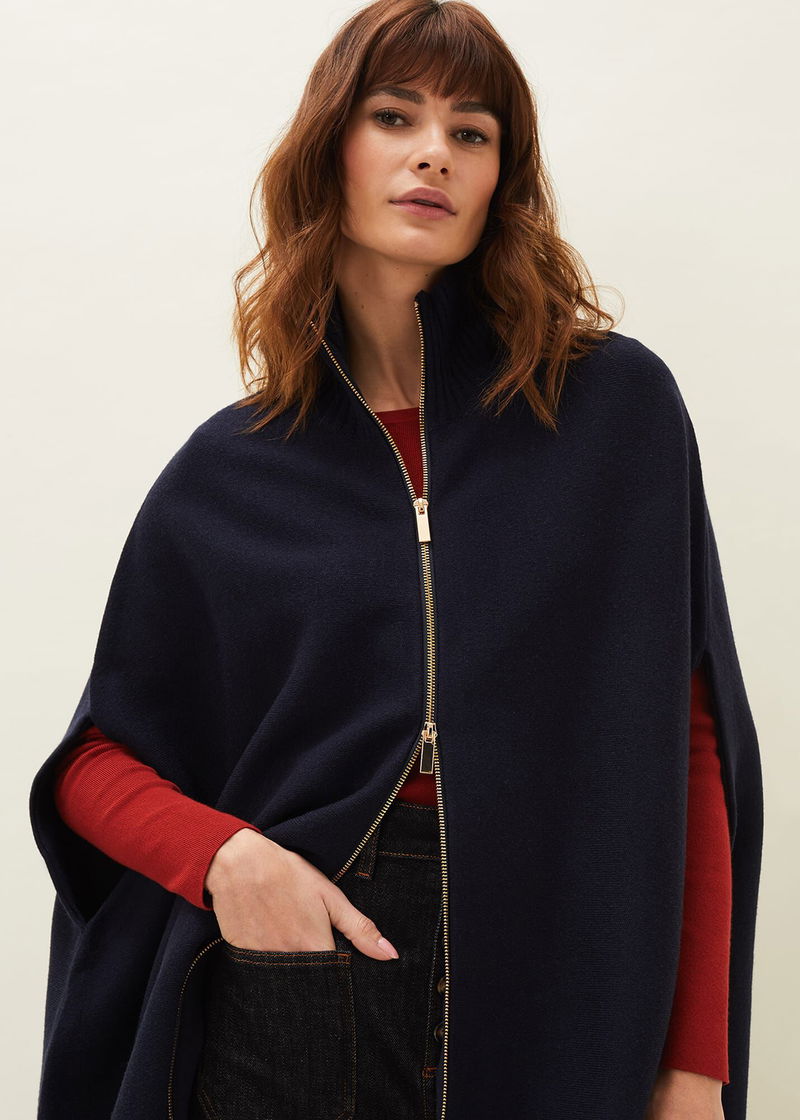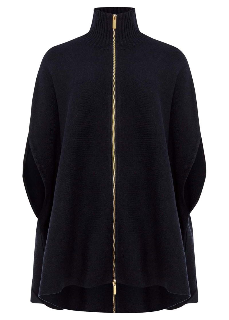 This a style you won't want to be without. Our Avan cape is designed in a warm wool-blend fabric that is perfect for layering over your everyday outfits. Featuring an exposed double ended zip front, this high neck cape is a versatile piece that you will have in your wardrobe season after season.