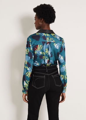 A statement blouse your occasion wardrobe needs. Designed in a deep shimmering green shade, our blouse features a notched neckline, pleated front and button down detailing as well as contemporary frill detailing along the blouson sleeves. Style with trousers and heels for an event-ready look.