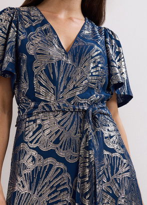 Effortlessly elegant. Featuring a beautiful floral print on a dark base, our Azalea dress is designed with a feminine V-neckline, metallic thread detail, a belt to highlight your figure and falls to a flowing silhouette.