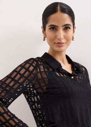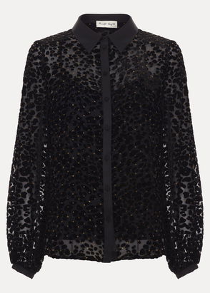 This effortless top features contrasting blosuon sleeves with an on-trend burnout design. Wear with jeans for both day and evening style.