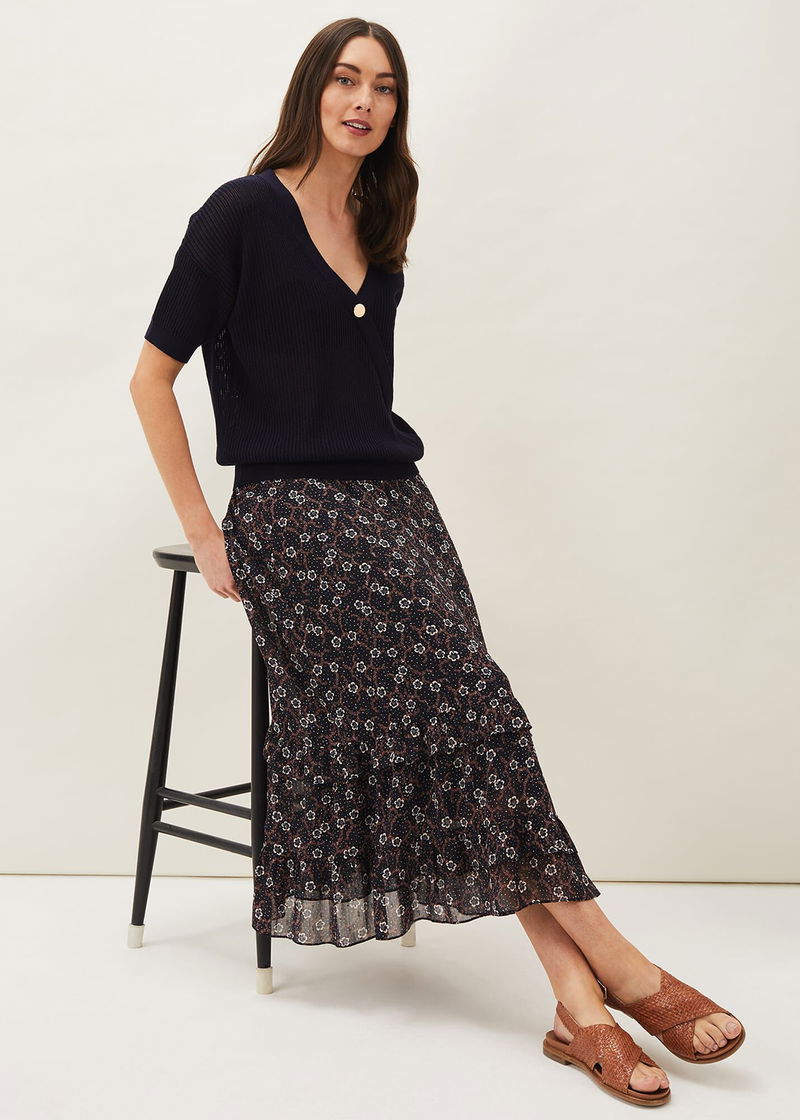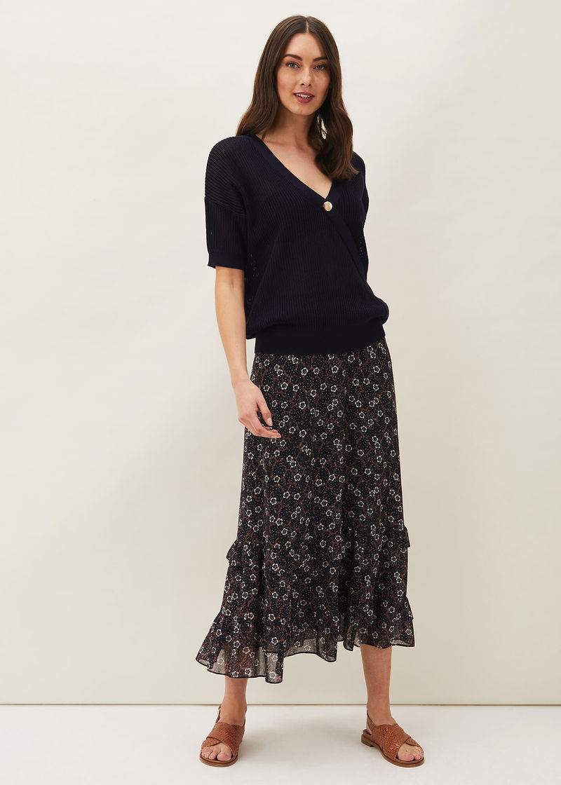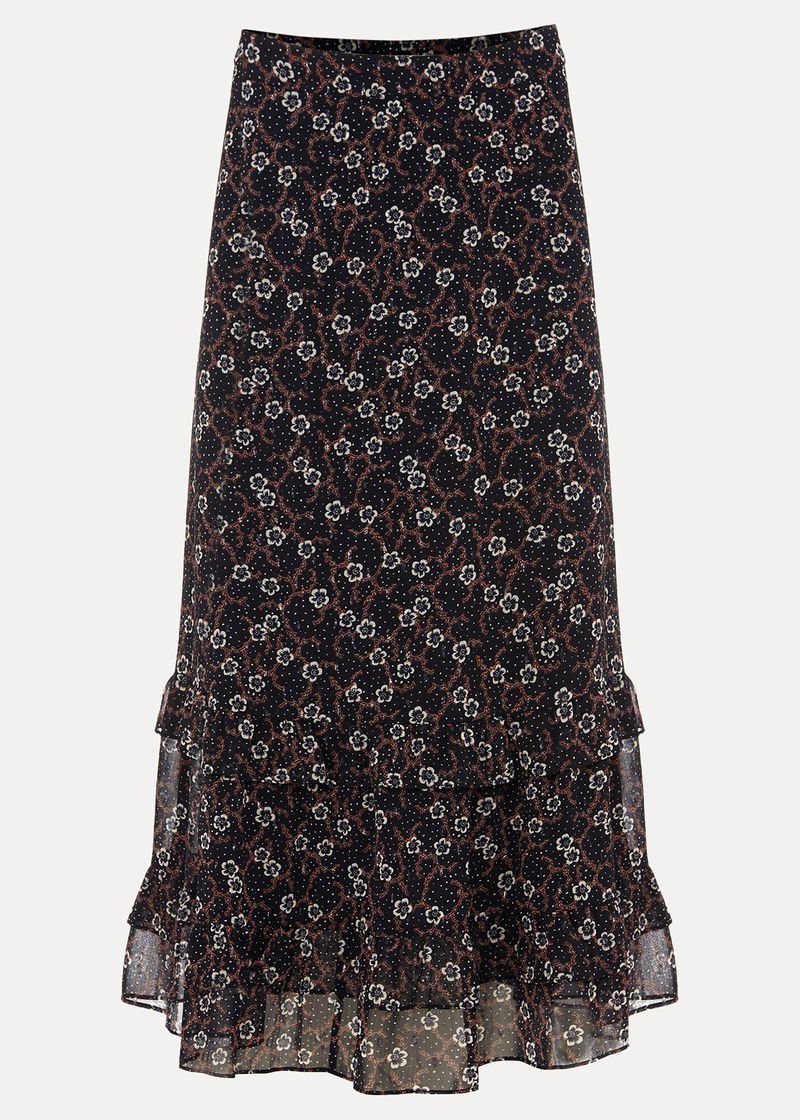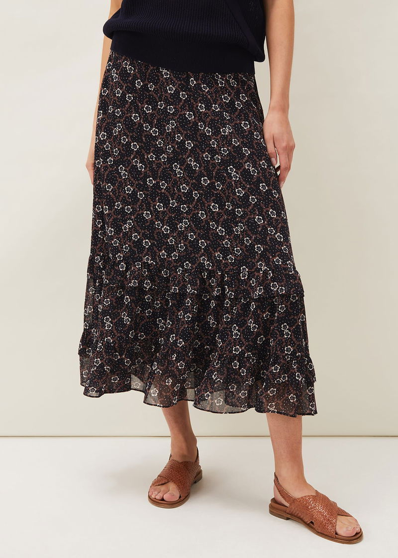 Designed with a semi-sheer floral overlay, our Buttercup midi skirt sits high on the waist and is finished with a feminine peplum hem. If you like this print, see also our Buttercup dress.