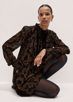 The perfect dress for your autumn winter wardrobe. Designed in a floral print, our style features blouson sleeves and falls to an easy swing silhouette. Style with knee high boots for a look that will take you from day to night, effortlessly.